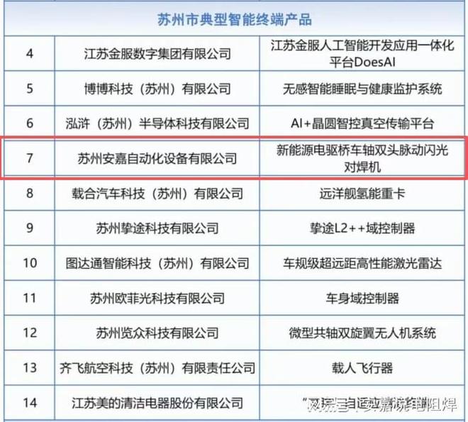 在近日举办的苏州市“AI+制造”工作推进会暨“模术空间”启动仪式上,苏州安嘉凭借自主研发的“新能源电驱桥车轴双头脉动闪光对焊机”