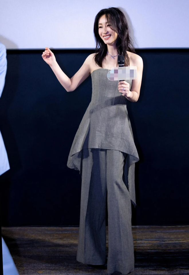 微卷的黑发赋予了她温婉与柔美的气质,而灰色抹胸套装则彰显出高级与优雅,两者相得益彰,让46岁的秦海璐焕发出了年轻的光彩,仿佛瞬间年轻了二十岁,犹如26岁的大姑娘般充满活力与魅力。