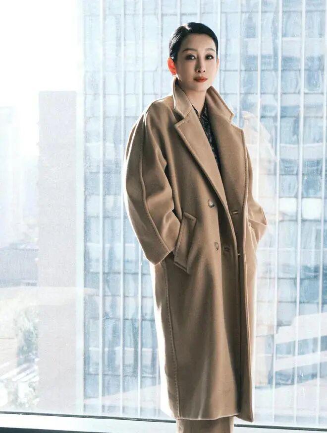 秦海璐选择长裤搭配驼色大衣的装扮,展现了一种简约而高级的美感。同色系的搭配技巧使得整体造型在视觉上呈现出和谐统一的效果,不仅拉长了身形线条,还营造出一种率性洒脱的气质。驼色作为秋冬季节的经典色彩,既温暖又不失高级感,非常适合打造优雅知性的风格。